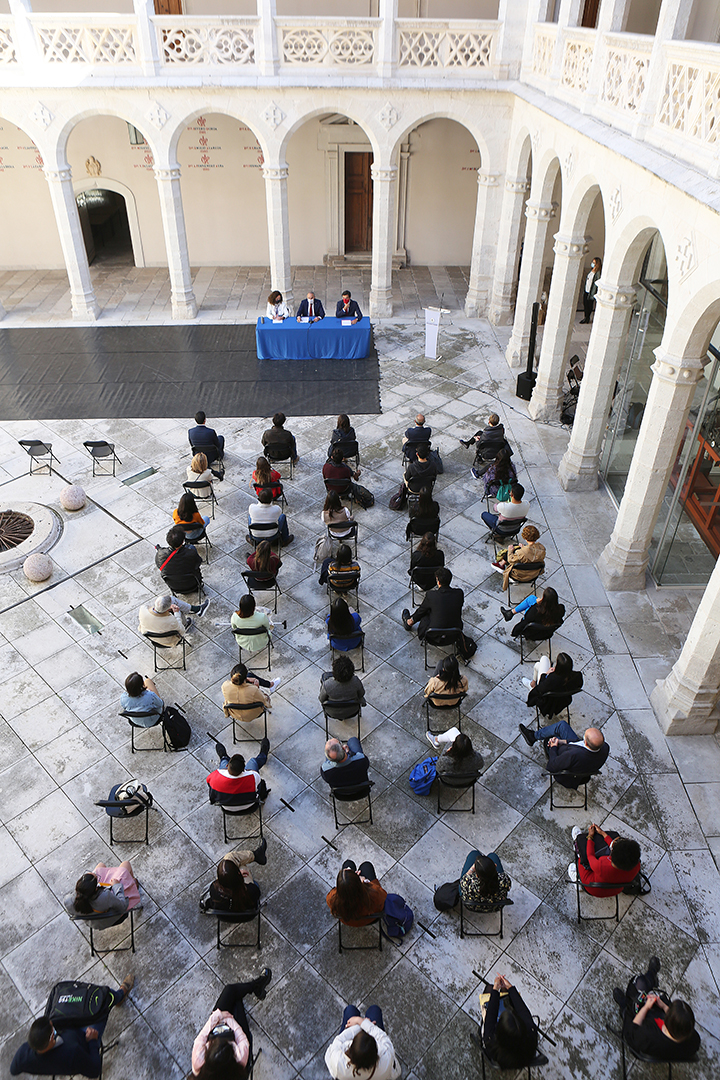 El acto se celebró el día 7 de octubre en el Claustro del Palacio de Santa Cruz y estuvo presidido por el Rector a quien le acompañaron en la mesa el Director de Instituciones de la Territorial de Castilla y León en Banco Santander, Rubén García Alija, y la Vicerrectora de Internacionalización, Paloma Castro Prieto.